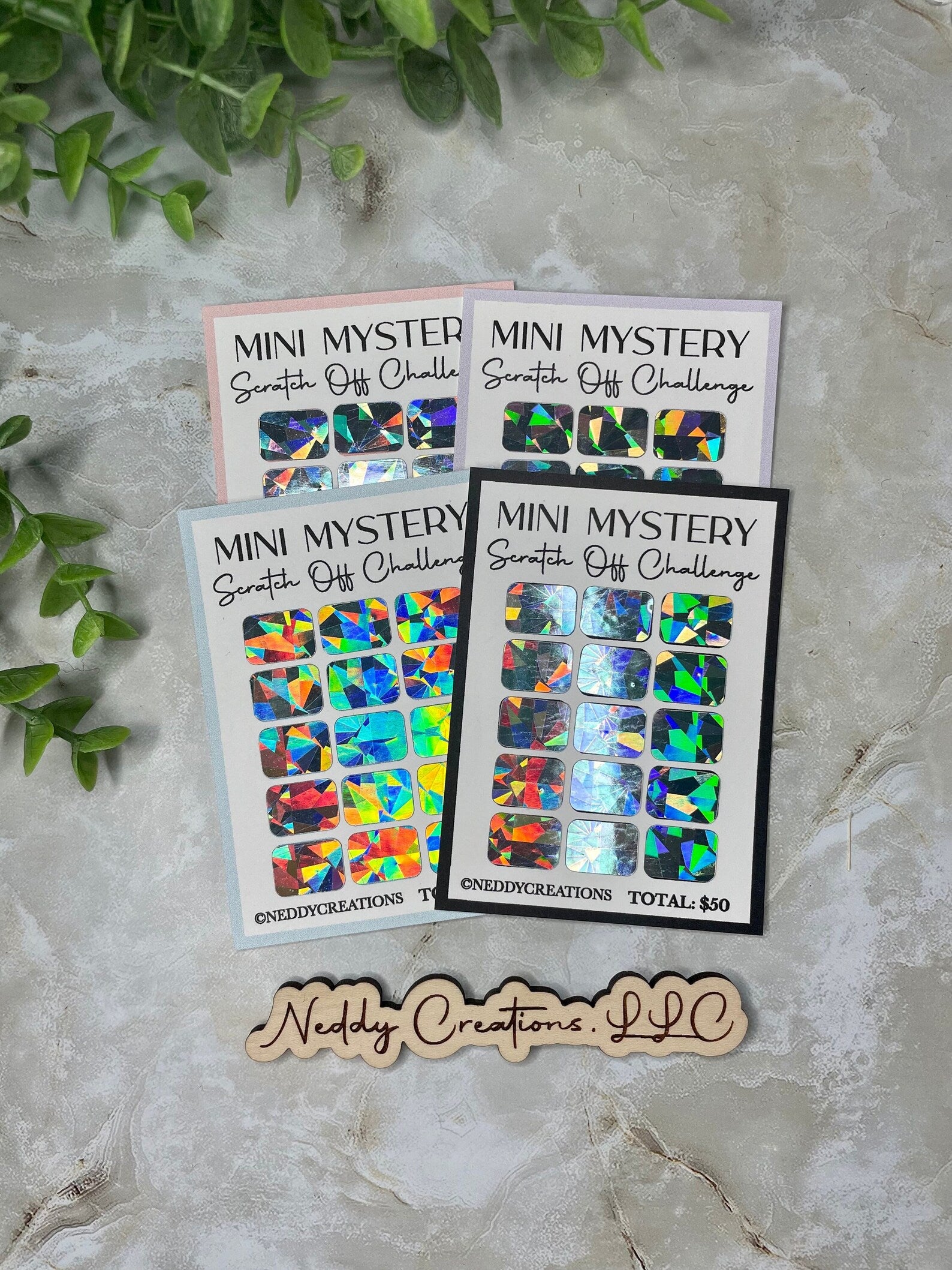 Mini Mystery Savings Scratch Off Challenge Tracker SIZE Approximately 2.6" x 3.6" | US Dollars